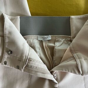 Chic beige trousers with a high-waisted design. Features a sleek button and zip closure.