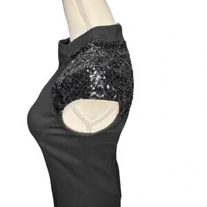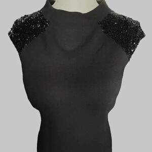 Peserico Black Sleeveless Midi Dress w/High Neckline & Sequin Embellishment Sz 6