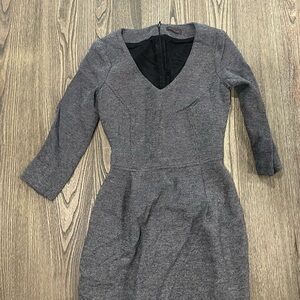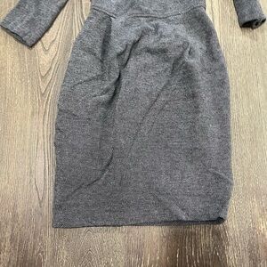 Peserico Midi Sheath Dress 3/4 Sleeve V-Neck Tweed Knit Lined Gray Size 38