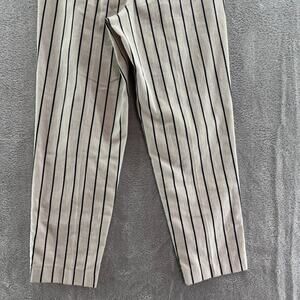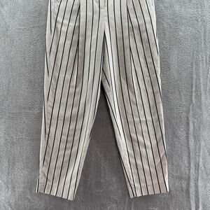 Peserico Pants Women EU38 Ivory Brown Pinstriped Cotton Trouser Leg High Rise