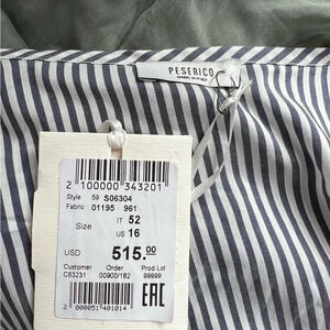 Peserico Silk Blend Striped 3/4 Sleeve Lightweight Women's Blouse Tunic Sz US 16
