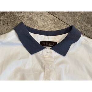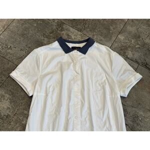 Peserico Tricot Poplin Short Sleeve White Shirt Blue Collar 42 US Medium Ribbed