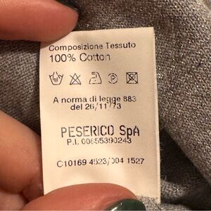 Elevate your wardrobe with this luxe Italian-made Peserico Tricot cardigan. This piece features a soft 100% cotton knit with a gorgeous silver metallic shimmer throughout—perfect for adding an elegant touch to everyday looks or dressing up for an evening out.