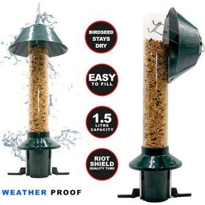 🧿SO SIMPLE TO USE AND FILL - Simply open the lid and fill. No need to take the whole feeder apart to fill. The PestOff bird feeder simply 'clicks' apart for easy cleaning, no nuts and bolts to remove and replace. Seed container is made from thick UV stable Polycarbonate.