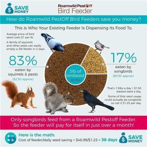 🧿NOW ALL METAL & NOW WITH A BIGGER 3LBS CAPACITY - 21”x 8 ”x 8” (w/hanger) - NOT JUST A 100% SQUIRREL PROOF BIRD FEEDER - ALSO BABY SQUIRREL PROOF, red squirrel proof, chipmunk proof bird feeder, and LARGE BIRD PROOF. Pests cannot feed so it SAVES you money! Roamwild PestOff Warranty Included. Watch the feeder in action in the video in the image section.