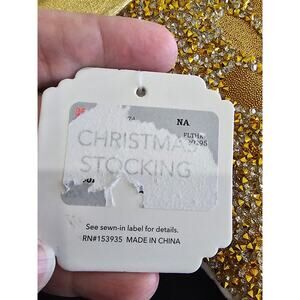 NWT Bling Glittery Christmas Stocking for Pet Gold Cream Jeweled Holiday Time