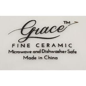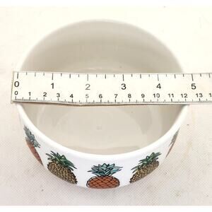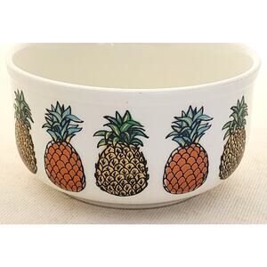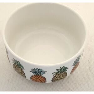 Nice small size pet bowl by Grace Fine Ceramic. This is a white bowl with copper and gold colored pineapple design around the outside. The bowl is about 5" in diameter and 2.5" tall. This may be from a set of ceramic dishes, but I only have this one bowl and it would make a very nice food or water bowl for a cat or a small dog.