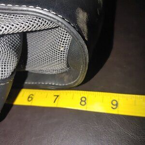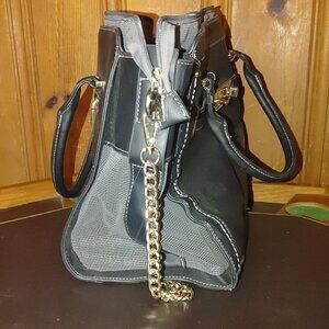 Pet Carrier Bag Purse Mesh Sides Quilted Base Black Gray Gold Chain Strap