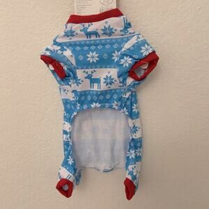 Pet Central Dog Christmas Pajamas Sz S Small Puppy Light Blue White Print