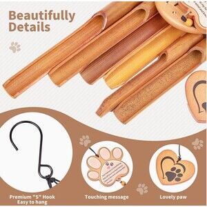 Add a peaceful touch to your indoor or outdoor living space with this beautiful Melmlond wind chime. The 38'' wind chime features a charming dog design and is made of high-quality wood materials that produce a soothing sound when the wind blows. Perfect for pet lovers, this wind chime can serve as a pet memorial or as a thoughtful gift for someone who has lost their furry friend. The country-style wind chime is suitable for both indoor and outdoor use, making it a versatile addition to any home or garden. The wind chime is categorized under Wind Chimes, Décor, Yard, Garden & Outdoor Living, and Home & Garden categories on eBay. Celebrate the memory of your beloved pet with this unique and elegant wind chime.