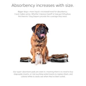 3 WASHABLE DOG DIAPERS PER PACKAGE - So you can have one in the wash, one on your pup, and one on hand, just in case. Pet Parents washable doggie diapers save you money and are safer for the environment than single-use disposable dog diapers female & dog diapers male.