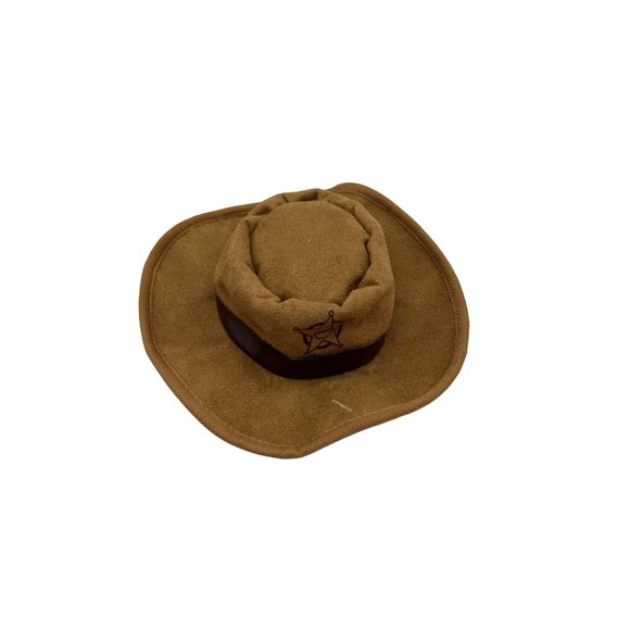 Pet Play Dog Toy Sheriff Hat Squeaks Brown NWOT