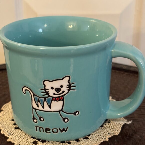 Turquois Blue 'MEOW' CAT Mug