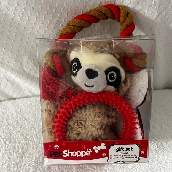 Pet Shoppe Christmas/Holiday Brown Sloth Plush 4 Pet/Dog Toys Gift Set