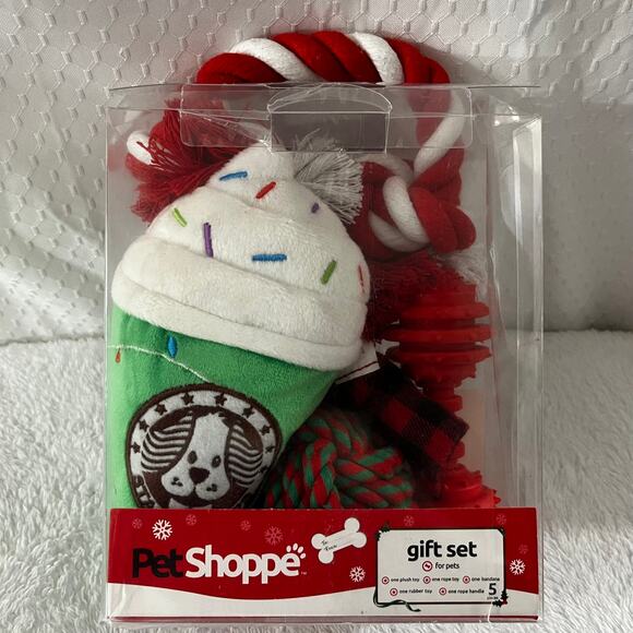 Pet Shoppe Christmas/Holiday Star Pups Latte Plush 5 Pet/Dog Toys Gift Set