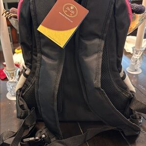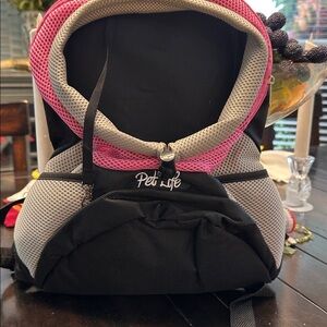 Very cute black and pink et backpack.Great for small dogs and cat.I would say a dog 5-8 pounds would be a perfect fit.