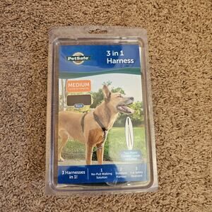 PetSafe 3-in-1 Dog Harness Medium Black Gray No Pull w/ Two Point Control Leash
