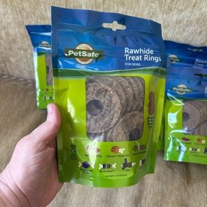 tags: PetSafe rawhide rings, Rawhide treat rings, Sealed dog chew packs, Bulk rawhide dog treats, Long-lasting dog chews, Dental rawhide chews, Natural rawhide treats, Training reward chews, Rawhide snack for dogs, PetSafe dog treats, Puppy teething chews, Beef-flavored rawhide, Safe dog chew toys, Pack of 7 dog chews, Rawhide dental sticks, Durable dog chews, Packaged rawhide treats, Veterinary-approved chews, Peanut butter rawhide rings, Rawhide chew refill