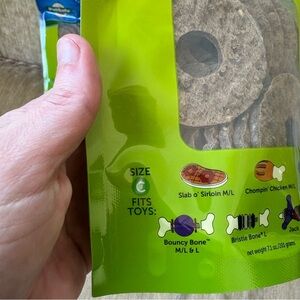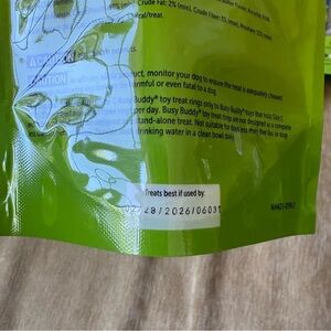 PetSafe Rawhide Treat Rings in vibrant blue and green packaging. Ideal for dog treats. Size c fits a series of toys that are listed at the bottom of the package. But you can also give them to your dog without the specialty toys. They are peanut butter flavor. They retail for around $9/bag. I bought this in an Amazon mystery box and was (unpleasently) surprised to find food items, including pet food items in the bag. I don't own a dog, so I'm just trying to recoup some of what I spent on the box. It was a gamble! :-) But I know these will make some dog very happy! Expires 02/28/2026