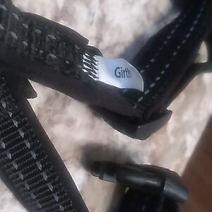 Pre-owned in new unused condition. Black harness that has tabs to help you know how to put it on.For added comfort use with PetSafe Two Point Control Leash. The double ended leash attaches to front and of 3 in 1 harness providing more control on your walks.