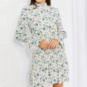 Petal Dew Meadowscape Floral Smocked Mock Neck Mini Dress