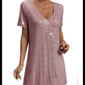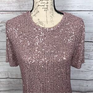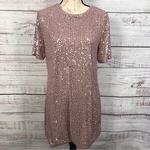 Petal Dew pink sparkly round neck sequin size small pink midi Dress