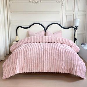 Light Petal Pink Faux Fur Bedding Set