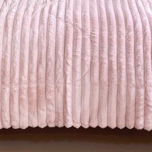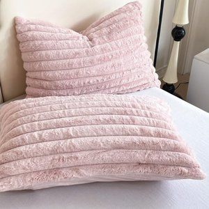 Petal Pink Soft Faux Fur Bedding Set Striped Comforter Shams Queen Size Bed New