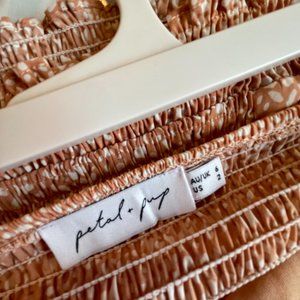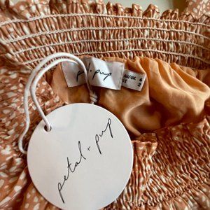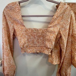 Size US 2, only bought to wear the top, so the skirt is NWT. Orange and white crop top and skirt set.