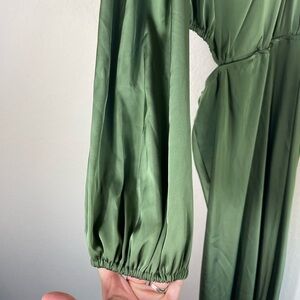 Petal & Pup Amelie One Shoulder Satin Maxi Dress Olive Green Size Large
