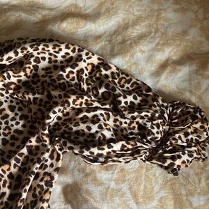 Chic animal print mini dress with a V-neck. Features puff sleeves and a flowy silhouette. Perfect for a bold look. “Trishna” dress. Only worn a couple times, since I’m almost 6ft tall it was too short on me! Super cute with leggings/tights in the winter. Breezy and fun for the warmer seasons.
