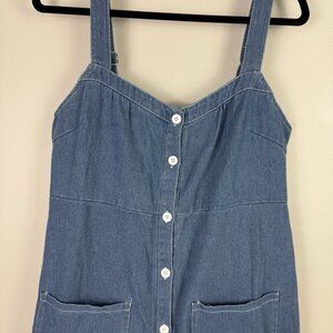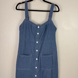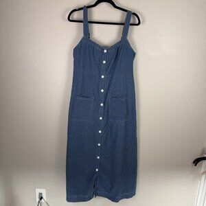 Petal & Pup Bettie Denim Midi Dress Blue Button Front Pockets 100% Cotton L
