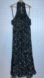 Chic black maxi dress with floral pattern. Halter neck design. Perfect for elegant occasions.
