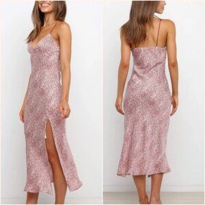Petal & Pup Brenda Printed Satin Sleeveless Midi Slip Dress Maroon Rust Size 8