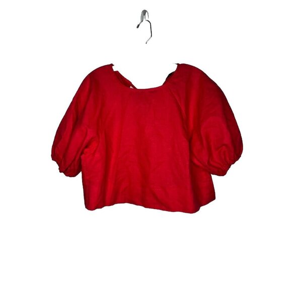 Petal & Pup Chelsea Linen Top Red Crop Tie Back Puff Sleeves Size 8 NWTS 1D