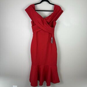Petal & Pup Dailene Off Shoulder Red Midi Dress Size S Cocktail Wedding Party