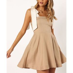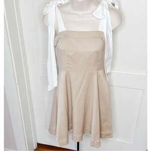 Petal & Pup Darla Bow Tie Mini Dress - Tan White Nwot Size XS
