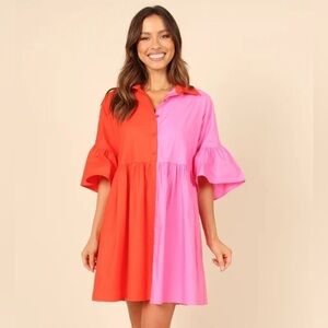 Petal & Pup Didi Babydoll Frill Flowy Pocket Collared Dress Red Pink Button
