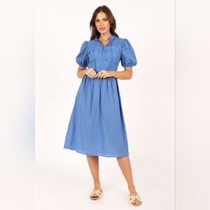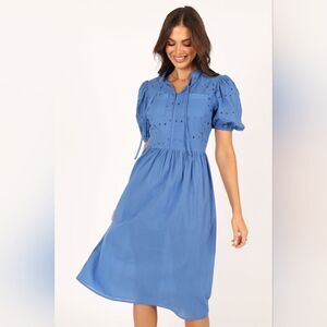 Petal & Pup Dusty Blue Rebekkah Eyelet Midi Dress, women's size estimate L/XL (please see measurements for fit)