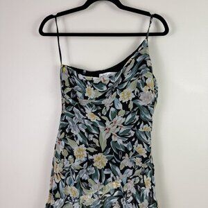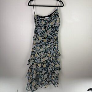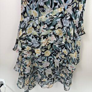 Petal + Pup Floral Ruffle Tiered Asymmetrical Midi Dress Black US 4 Boho Chic