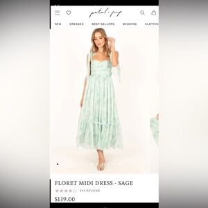 This stunning green maxi dress by Petal & Pup features a ruffled, tiered design perfect for wedding guests or cocktail events. The sleeveless style with a sweetheart neckline and flowing silhouette offers a romantic and elegant look.