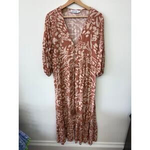 Petal & Pup Katerina Maxi Dress – Peach Botanical Print – Size 2