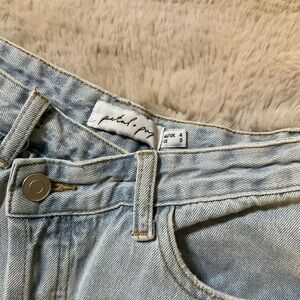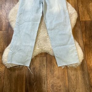 Petal & Pup Light Wash Asymmetrical Button Fly Denim Jeans Women's 0 Raw Hem, good used condition