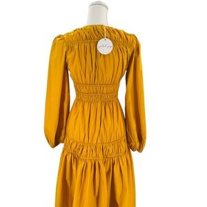 Petal & Pup NEW Dani Long Sleeve Cotton Maxi Dress in Mustard Yellow Size XS