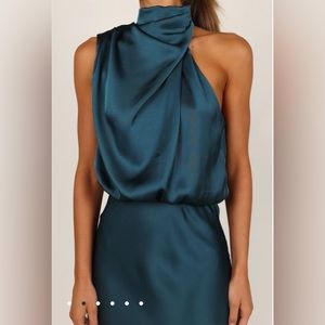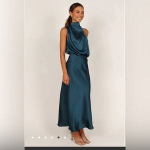 Petal & Pup- NWT SZ L TEAL ANABELLE HALTER NECK MIDI DRESS