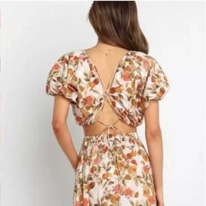 Keywords: Petal and Pup, Namarah Top, Crop Top, Floral Top, Short Sleeve Top, Open Back Top, Cream Floral, Size 6, Bohemian Style, Summer Top, Casual Top, Womens Top, Blouse