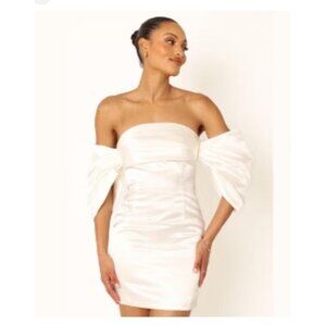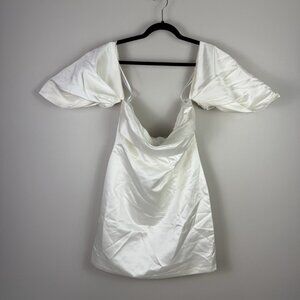 Petal & Pup Nisha Strapless Off Shoulder White Mini Dress Puff Sleeve US 10 Flaw