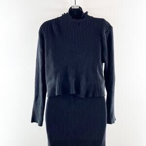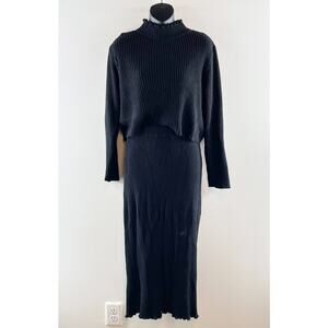Petal & Pup Payton Knitted Ribbed Sweater and Midi Skirt Set Black Medium