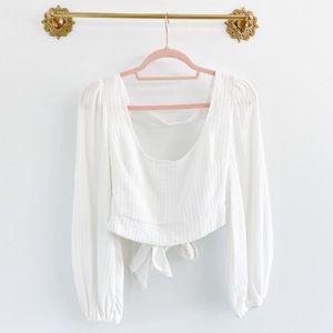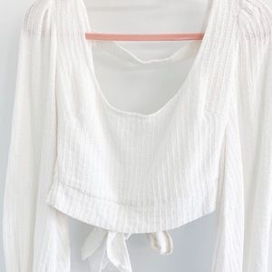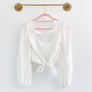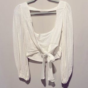@annapreuett hi, I can’t remember but the tie in the back helps make the shirt looser or tighter depending on how you want it to fit