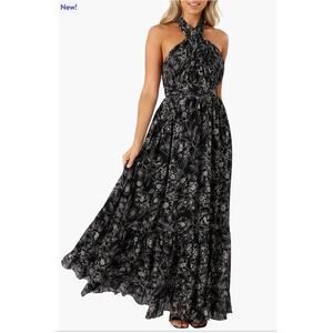 Petal & Pup Pleated Halter Black Floral Backless Lennon Maxi Dress Size M